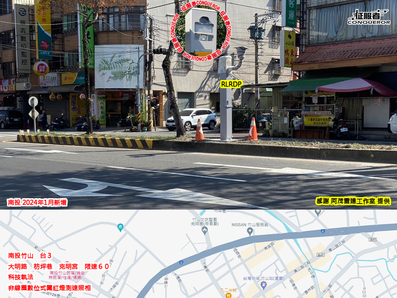 南投竹山 台3 大明路 枋坪巷 克明宮 限速60 科技執法 非線圈數位式闖紅燈測速照相