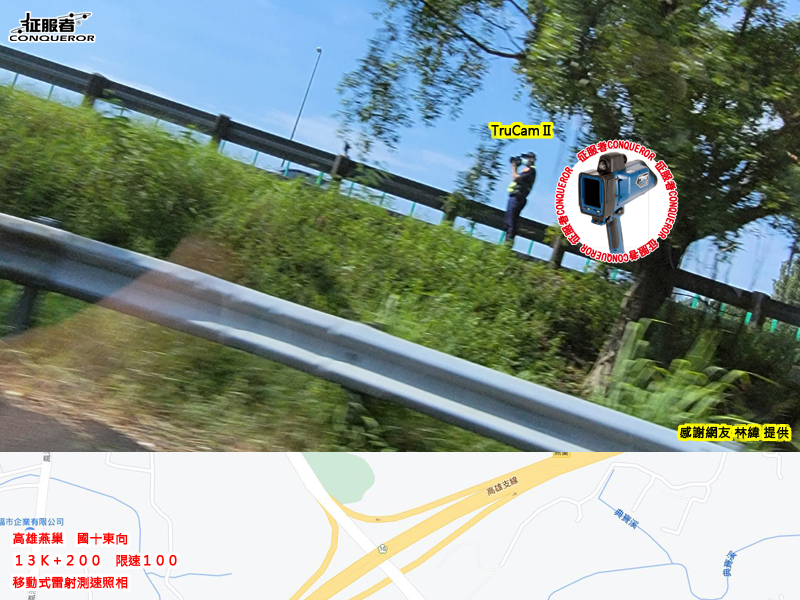 高雄燕巢 國十東向 13.2心K 限速100 移動式雷射測速照相