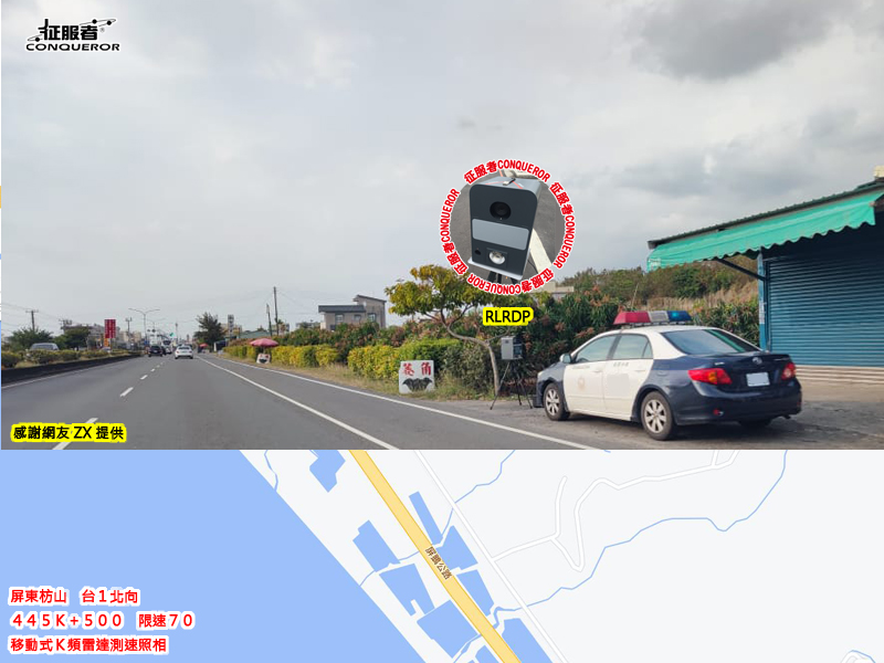 首頁 > 最新訊息 > 屏東枋山 台1北向 445.5K 限速70 移動式K頻雷達測速照相