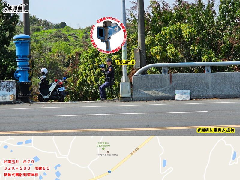 首頁 > 最新訊息 > 台南玉井 台20 32.5K 限速60 移動式雷射測速照相