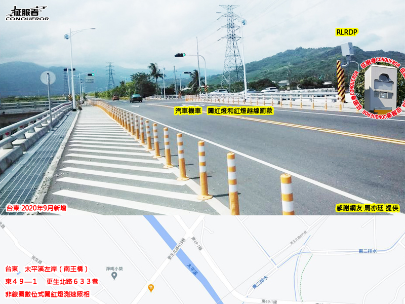 台東 太平溪左岸(南王橋) 東49-1 更生北路633巷 非線圈數位式闖紅燈測速照相