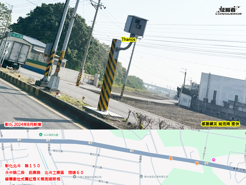 首頁 > 最新訊息 > 彰化北斗 縣150 斗中路二段 拓農路 北斗工業區 限速60 線圈數位式闖紅燈K頻測速照相